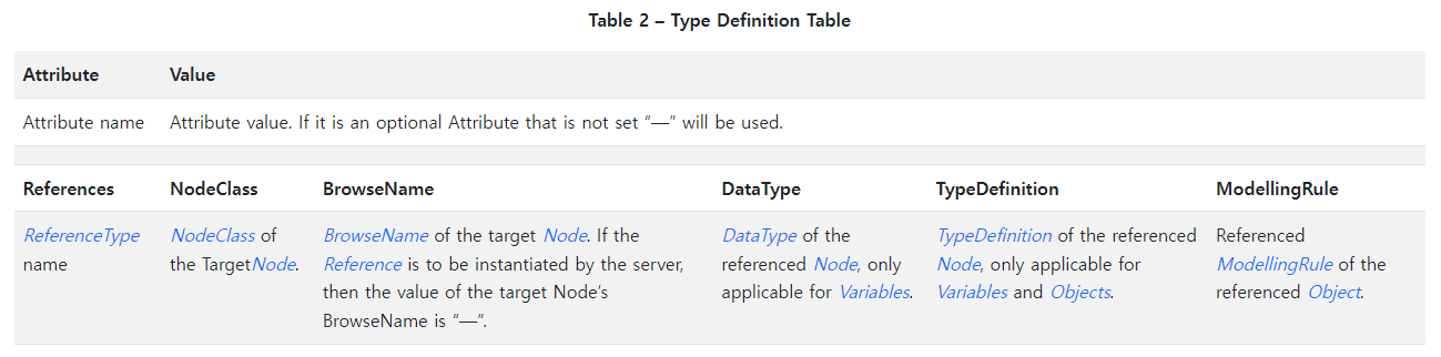 - 연결 또는 집계의 카디널리티는 OPC UA 모델링 규칙을 통해 지정,. 카디널리티가 0 또는 1인 경우 OPC UA 모델링 규칙 "Optional"이 사용. 카디널리티가 1인 경우 OPC UA 모델링 규칙 "Mandatory"가 사용. 카디널리티가 1인 경우 OPC UA 모델링 규칙 "OptionalPlaceholder"가 사용. (0, 하나 또는 둘 이상의 요소). 카디널리티가 1개 또는 1개 이상의 요소인 경우 OPC UA 모델링 규칙 "MandatoryPlaceholder"가 사용