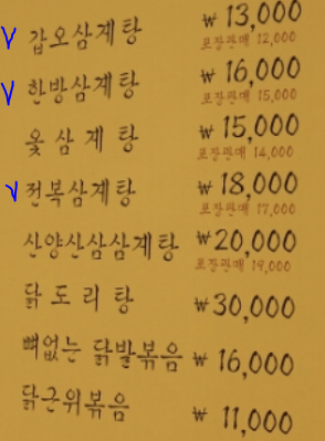 이 날은 갑오삼계탕을 주문해서 먹었습니다.